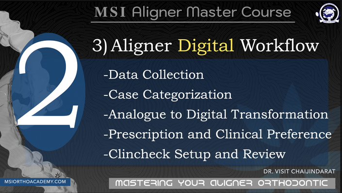 คอร์สนี้จะโฟกัสบนความรู้พื้นฐานทางทันตกรรมจัดฟัน ตั้งแต่ Biomechanic, Cephalometric analysis, Myofunctional Disorder, Smile Design ตลอดจนความรู้พื้นฐานที่เกี่ยวข้องกับ Aligner โดยตรง เช่น Biomechanic สำหรับ Aligner, การออกแบบ Attachment เพื่อสร้าง force System ที่เหมาะสมตามวัตถุประสงค์ของการเคลื่อนฟัน (Tooth Movement Objectives), รูปแบบการเคลื่อนฟันสำหรับการจัดฟันแบบใส เช่น Simultaneous TM, Sequential TM เป็นต้น, การสื่อสาร (Communication) กับ Technician เช่นการสั่งงาน การแก้ไข 3D ตลอดจน Digital Workflow ที่จำเป็นสำหรับการสั้งชิ้นงาน